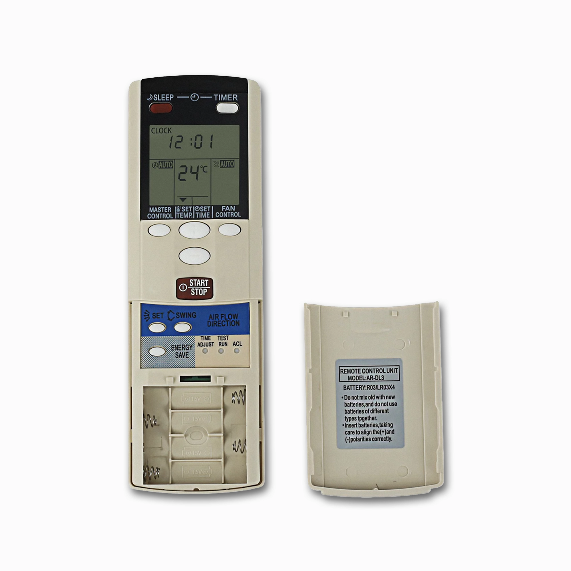 The AR-DL3 Replacement Remote for Fujitsu Air Conditioners brings comfort back into your home by providing a high-end replacement that is made to replace your original Fujitsu controller. With this replacement remote, you can use the Energy Save, Sleep Timer, Powerful Mode, and adjust Fan Speed. Also, designed for your ease, you will find a large LCD display and large buttons. To use, you only need to insert the batteries, and without programming, you can begin use on your Fujitsu split system right away!