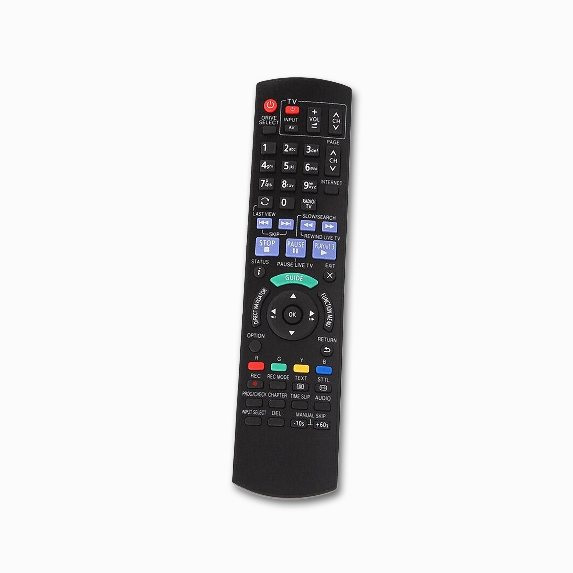 With effortless control to the Panasonic DVD remote, Restore seamless access to the entertainment system the N2QAYB000980 Replacement Remote Panasonic DVD Recorders is built to replicate the full functionality of the original Panasonic remote control so you can control your HDD recording, disc playback and system operations, remote features buttons for the EPG (Electronic Program Guide) and the Function Menu and Direct Navigator buttons for quick, simple recording and library access, no complicated pairing, just plug and play batteries to the recorder and you are ready to go.