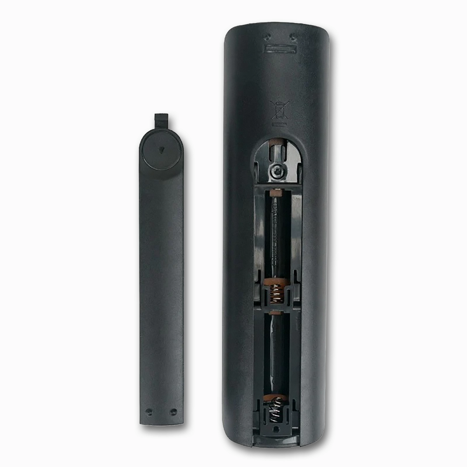 - Insert two fresh AAA batteries into the remote.